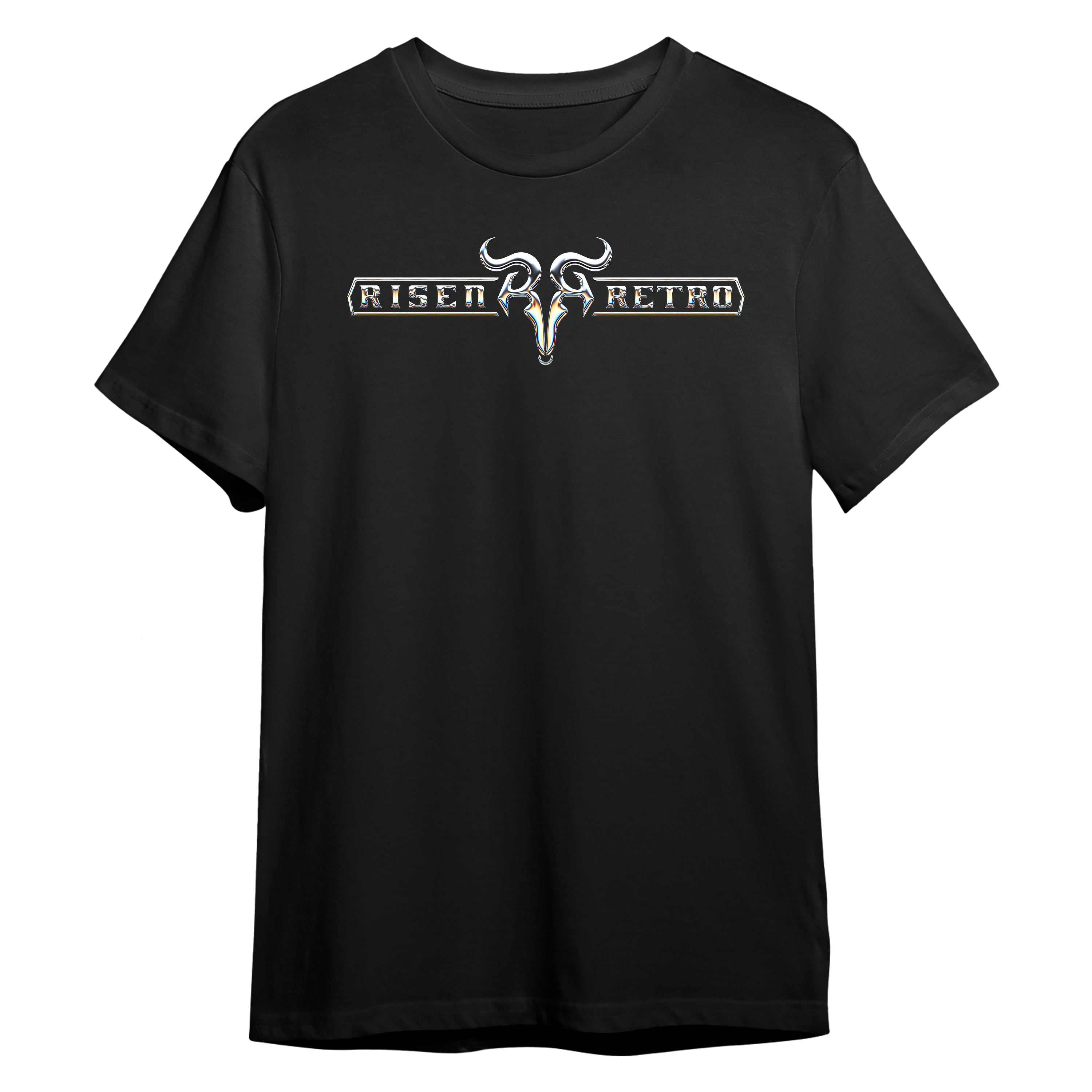 Design: Chrome-effect RISENRETRO logo with horned emblem