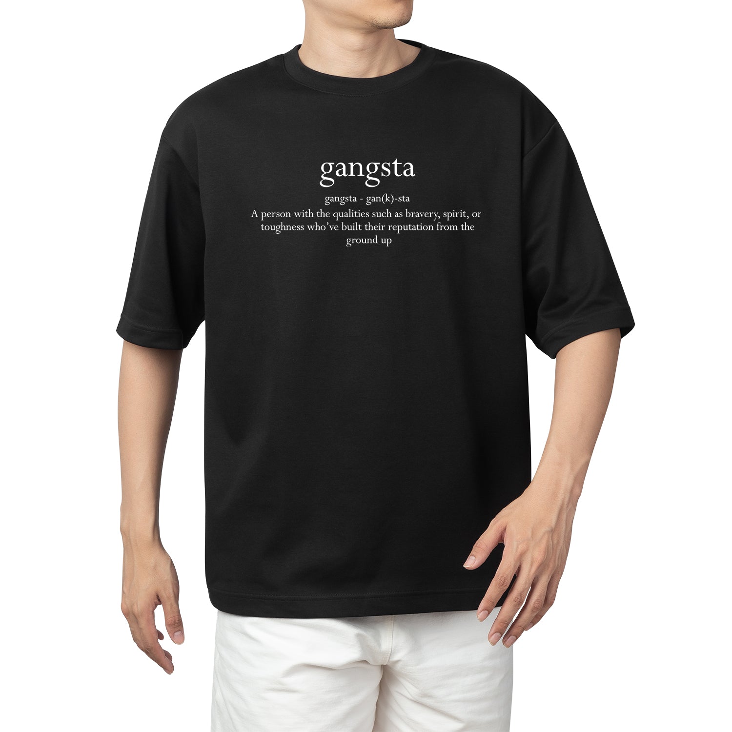 Rise from the streets with the RISENRETRO Gangsta Grind Tee, a bold tribute to those who build their legacy from the ground up. This regular-fit, 100% cotton tee features a striking DTG print with the word “gangsta” in large, serif font, followed by its definition: “A person with the qualities such as bravery, spirit, or toughness who’ve built their reputation from the ground up.” The crisp white text on a deep black backdrop exudes raw, unapologetic energy, resonating with the hustle of hip-hop culture and the resilience of roots. Finished with a ribbed crewneck and twin needle stitching, this tee offers comfort and durability for the real ones who define their own path. Wear your grit, live your grind.