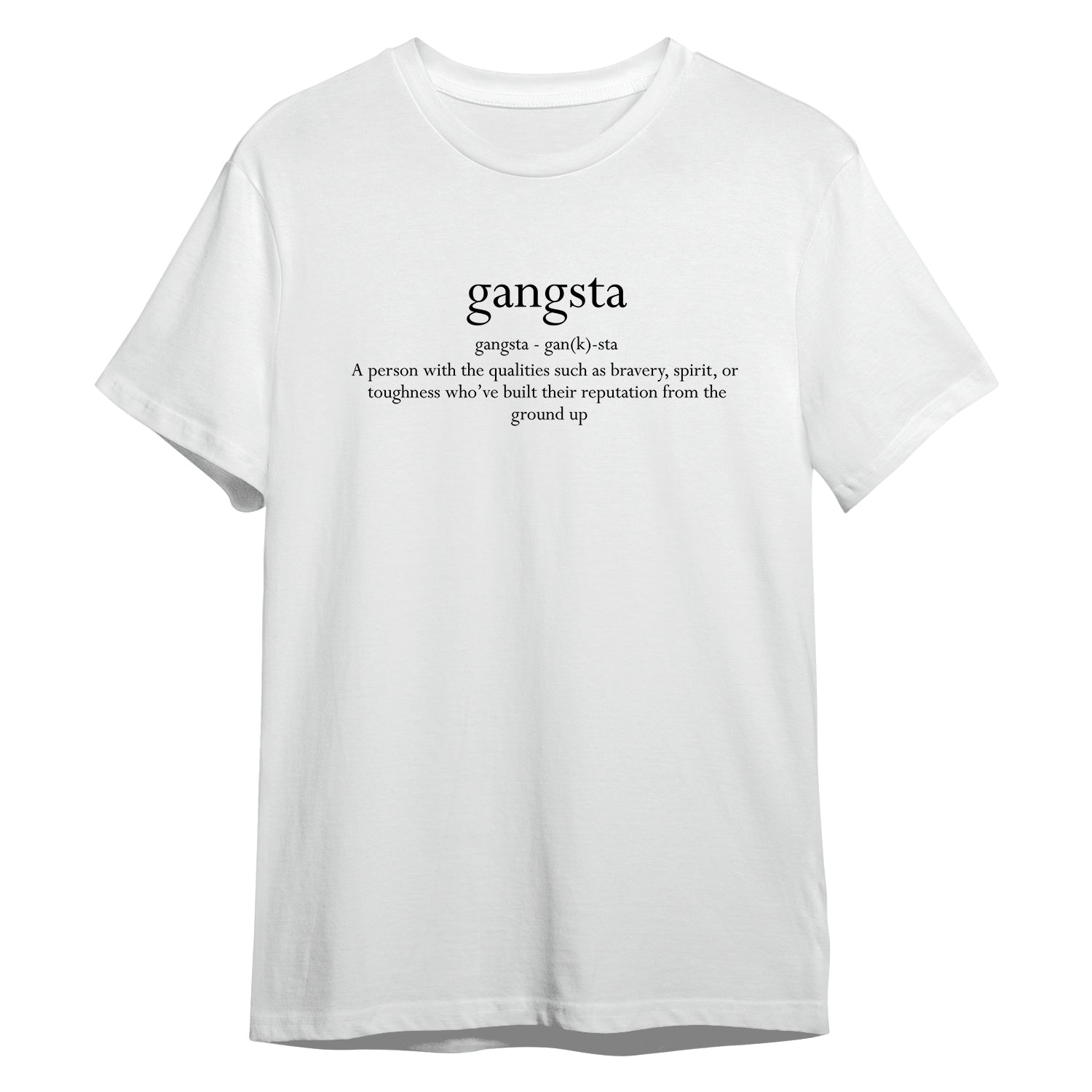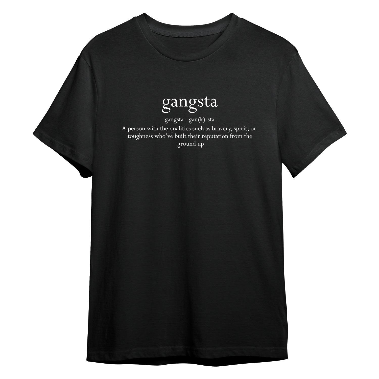 Rise from the streets with the RISENRETRO Gangsta Grind Tee, a bold tribute to those who build their legacy from the ground up. This regular-fit, 100% cotton tee features a striking DTG print with the word “gangsta” in large, serif font, followed by its definition: “A person with the qualities such as bravery, spirit, or toughness who’ve built their reputation from the ground up.” The crisp white text on a deep black backdrop exudes raw, unapologetic energy, resonating with the hustle of hip-hop culture and the resilience of roots. Finished with a ribbed crewneck and twin needle stitching, this tee offers comfort and durability for the real ones who define their own path. Wear your grit, live your grind.